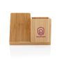 Rectangular bamboo and metal keychains, metal in shiny nickel, front side with bamboo plate, with 32mm shiny nickel flat ring.